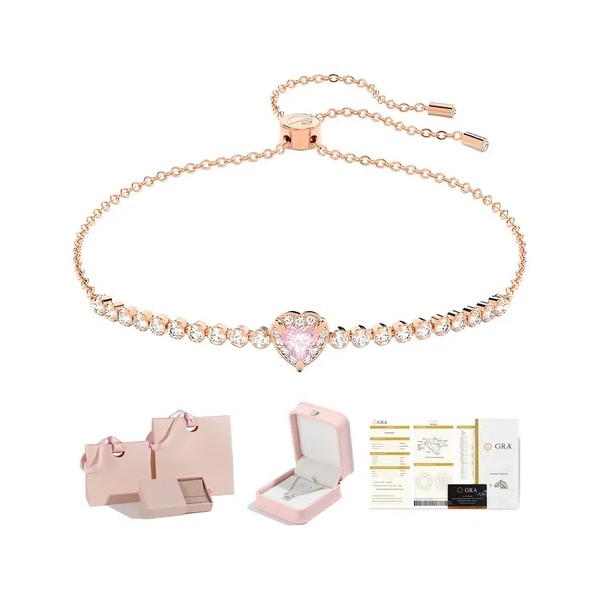 Pulsera de Corazón Rosa con Diamantes - Romance y Elegancia