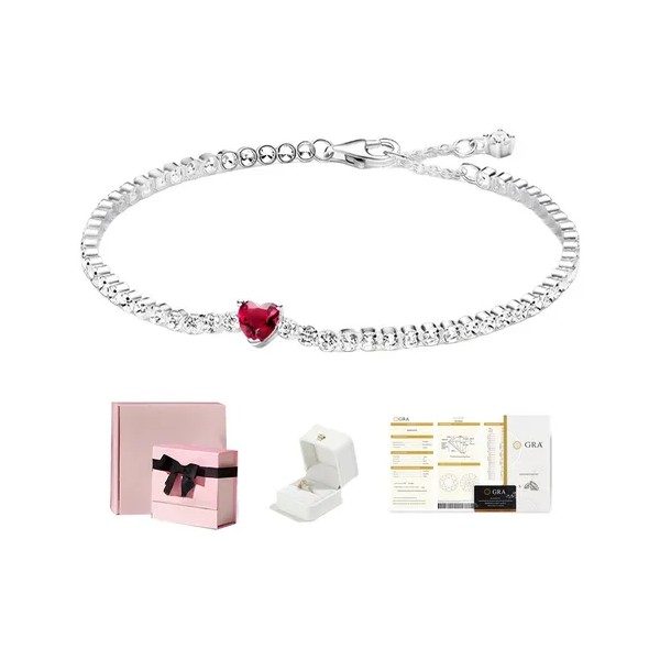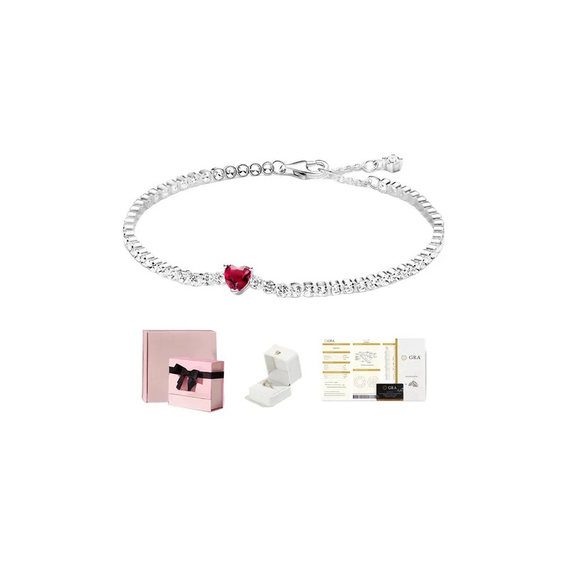 Pulseras De Plata 925 Mujer Rubí De Corazón Elegantes Regalo