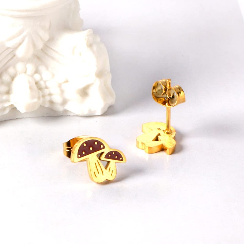 - Mushroom earrings for women that will be adored by all. Beautiful made in stainless steel & finished with rich enamel, these mushroom studs are just exotic. Pictures do not justify the cuteness of these lovable studs pair. The beauty of these earrings would enhance when worn. How happy would this make her feel!! A perfect birthday surprise gift for girlfriends. Now you can't just stop with one, can you? Treat yourself with one, for you are still young at heart!