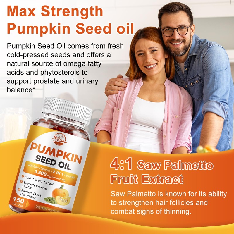 - 【3500mg Max Strength Pumpkin Seed Oil Softgels】High concentrated cold-pressed ingredients, without the use of solvents and derived only from the highest quality non-GMO pumpkin seeds. 2-in-1 complex with saw palmetto extract, retains essential fatty acids, phytosterols, and antioxidants