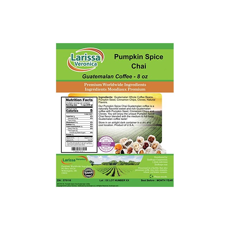 - Our Pumpkin Spice Chai Guatemalan coffee is a naturally flavored sweet and rich Guatemalan coffee with Pumpkin Seed, Cinnamon Chips and Cloves. You will enjoy the unique Pumpkin Spice Chai flavor blended with the medium to full body Guatemalan coffee taste! - Ingredients: Guatemalan coffee (whole coffee beans), Pumpkin Seed, Cinnamon Chips, Cloves and Natural Pumpkin Spice Chai Flavor.