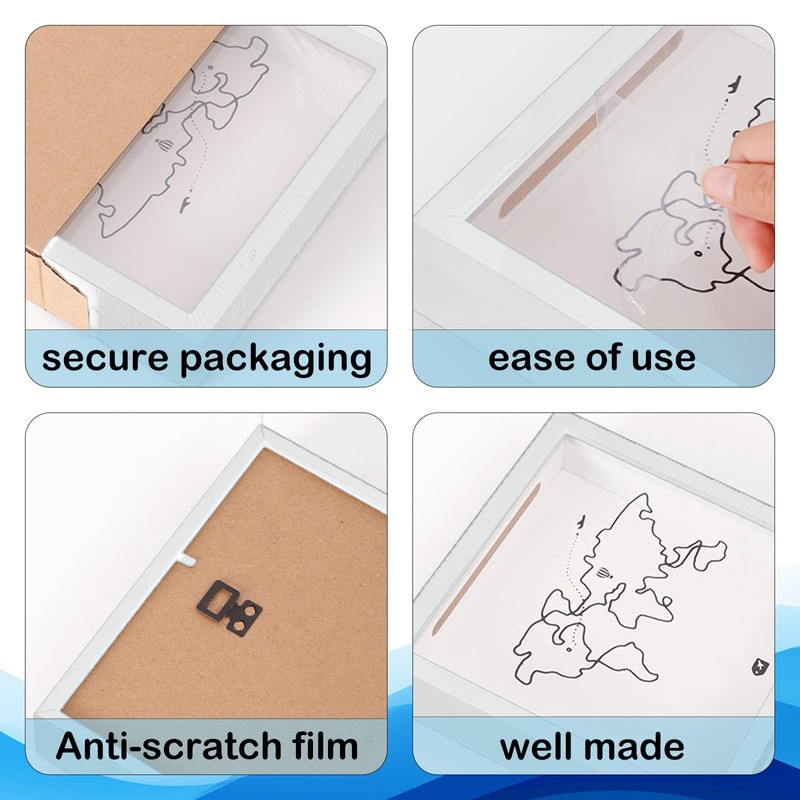 - Ready to Hang or Stand: Equipped with sturdy hooks for wall mounting and a flat base for tabletop display, this box frame easily fits into any home or office decor. Perfect for entryways, bedrooms, or living rooms.