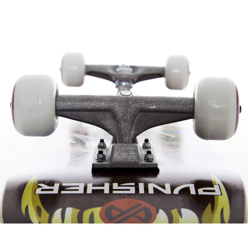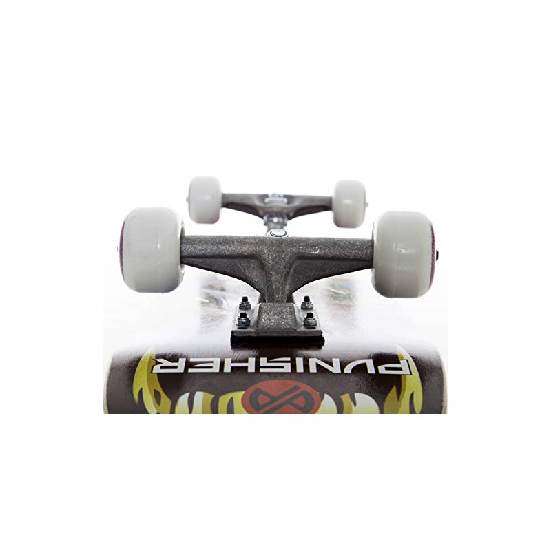 - PUNISHER ABEC-7 High Speed Wheel Bearings. PE Riser Pads, and Polyurethane Cushions with Punisher Skateboard Logo Printing. PUNISHER Heavy-Duty 5" Alloy Trucks & Bases.