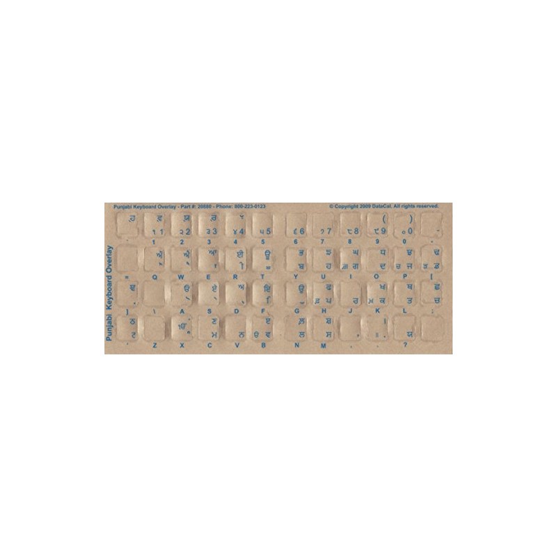 Punjabi Keyboard Stickers - Labels - Overlays with Blue Characters for White Computer Keyboard