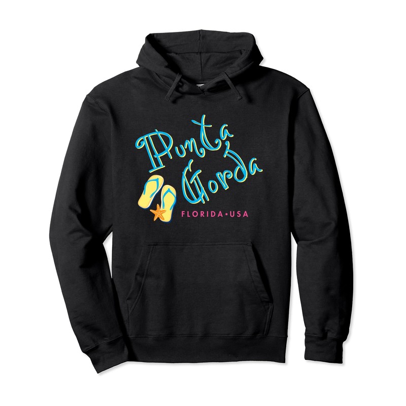- Tropical colored design featuring flip flops is perfect for Punta Gorda, great Gulf Coast community.