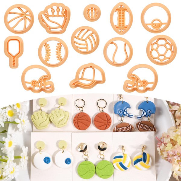 Puocaon Sports Polymer Clay Cutters - 13 Pcs Baseball Football Game Volleyball Clay Earring Cutters for Jewelry