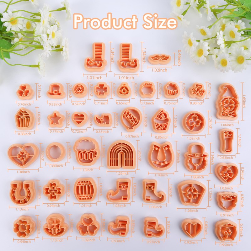 - St Patrick's Day Clay Cutters: It's a all in one st patrick's day clay cutters set. You will receive 41 pcs clay cutters in total. There are clay cutters for common size, suitable for making clay earrings. And mini size clay cutters, designed for stud clay earrings making.