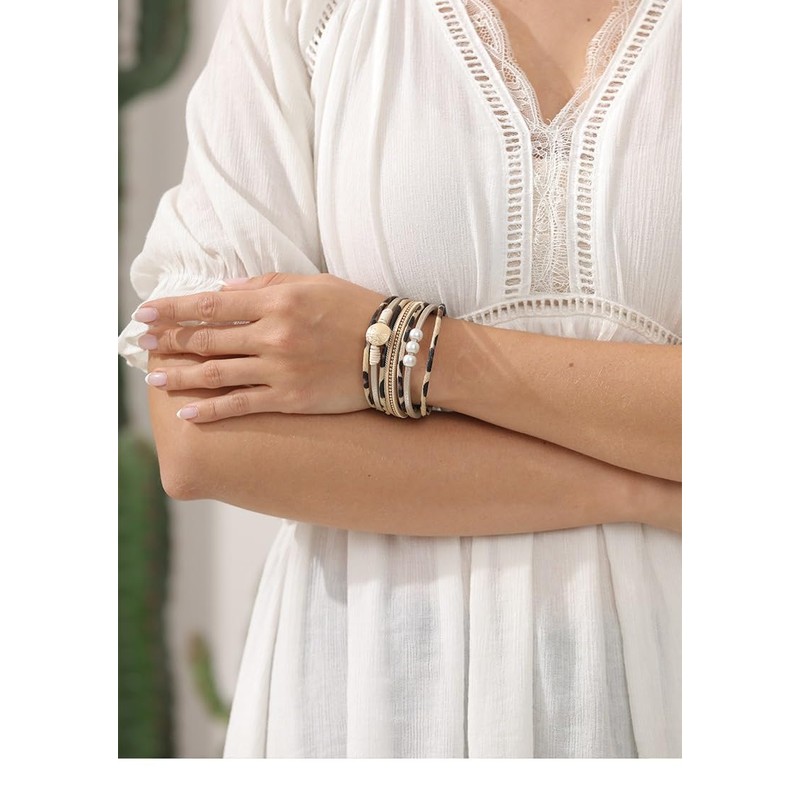 - The multi-layer bracelet can be worn in daily life, summer, beach, party, vacation and other occasions. It can be matched with any clothes such as skirts, t-shirts, jackets, sweaters, coats,...