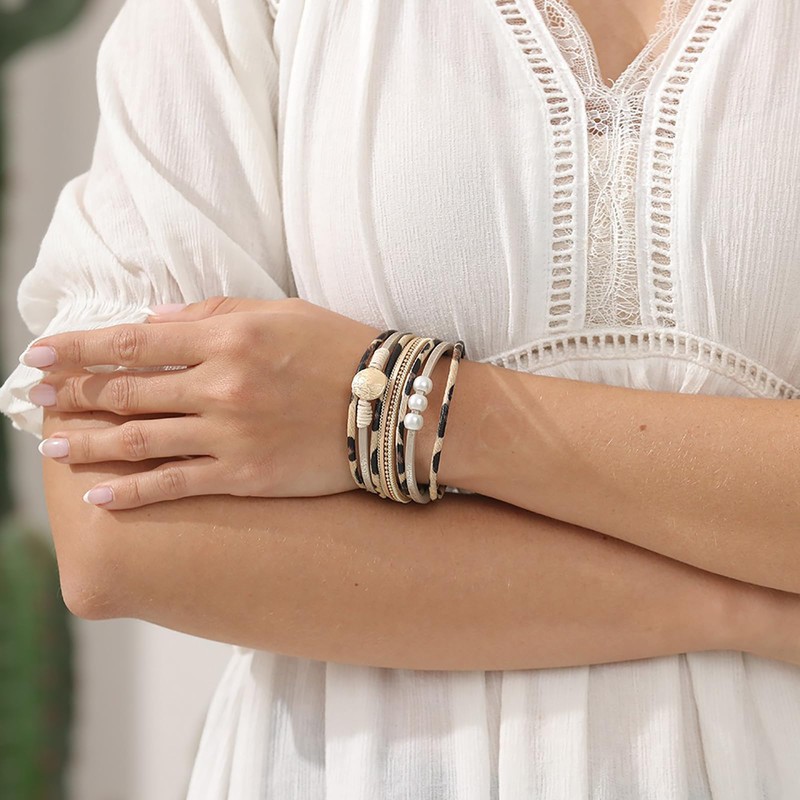 PUOSUO Leopard Bangle Bracelets for Women - Multi Layers Casual Bracelet for Women(A)