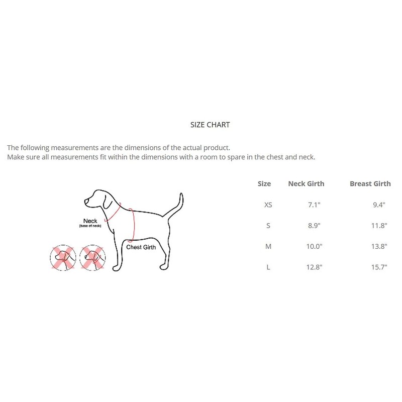 - Size: Large: 11.42" Neck, 16.93" Chest