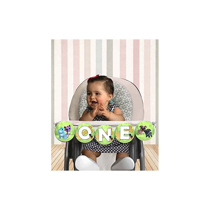 Puppy Dog Pals High Chair Banner - ONE - Cardstock Cover 80lb - Comes with Ribbon for Hanging - 25in approx length (Green)