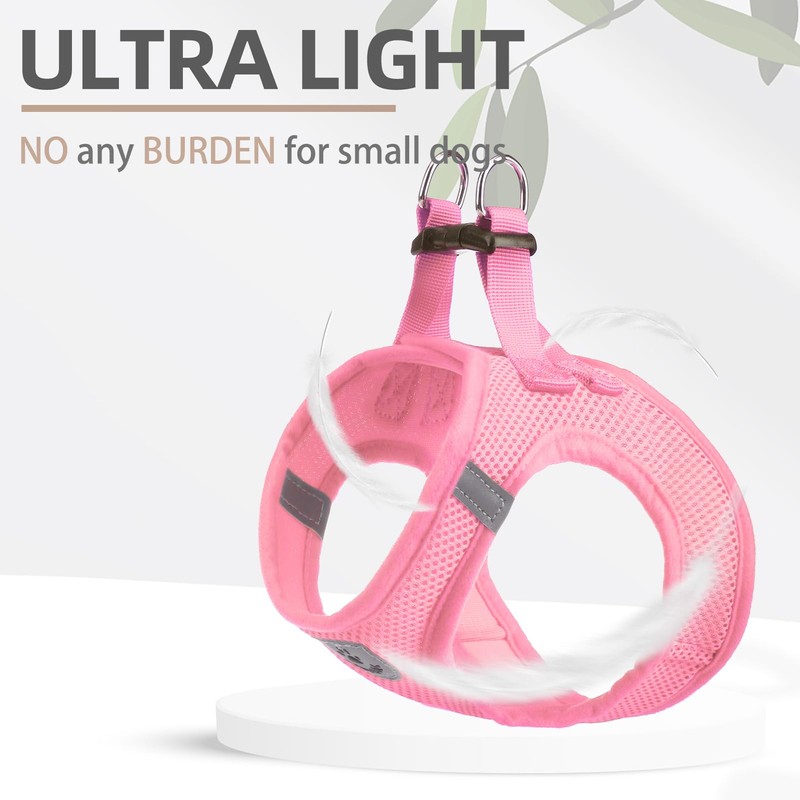 • COMFORTABLE MATERIAL, DAILY WALKING, FOUR SEASONS WEARING: - The harness is made of durable polyester, and it's adopted with an air-mesh design. The whole harness is very soft, lightweight, and breathable. Even if your dog wears it all day, he won't feel any discomfort. For daily walking or running, it is a very easy thing to do. Besides, this is a four seasons harness, it keeps the dog cool on hot days and keeps the dog warm on cold days