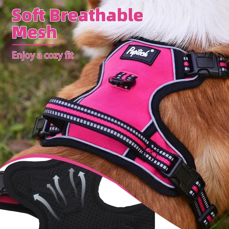 PUPTECK Adjustable Dog Vest Harness, Comfortable Pet Harness, Reflective Step-in No Pull and Breathable Mesh Dog Vest Harness, Fuschia S