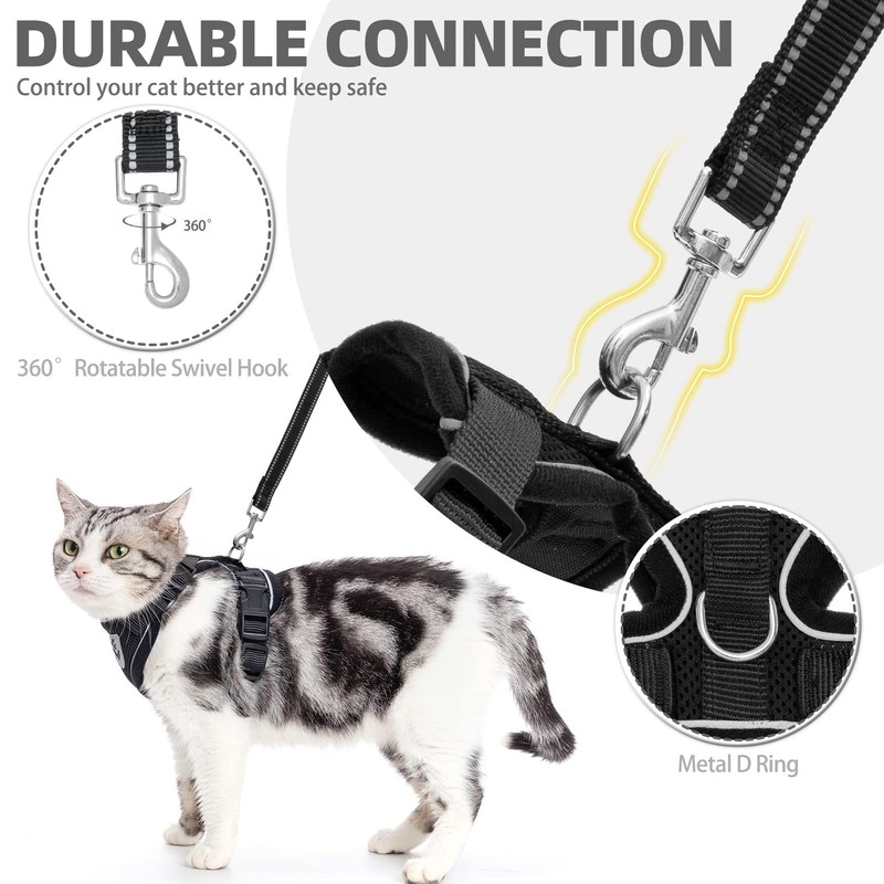 - Escape Proof Cat Harness: The four adjusting straps allow a just-right fit for your flexible cat and the sturdy safety buckle for a more secure closure so that he/she won't slip out easily or even get lost during outdoor adventures. Have an enjoyable walk, exercise, and playtime outside with your kitty now!
