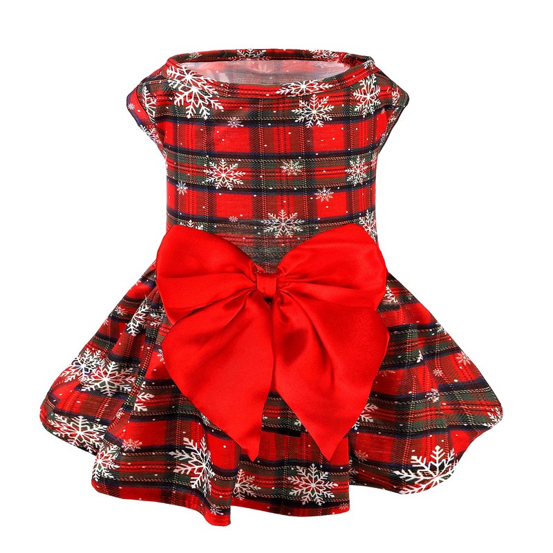 PUPTECK Plaid Dog Christmas Dress Cute Puppy Costume Outfit Small Dogs Clothes with Bowknot Skirt, Snow, XS