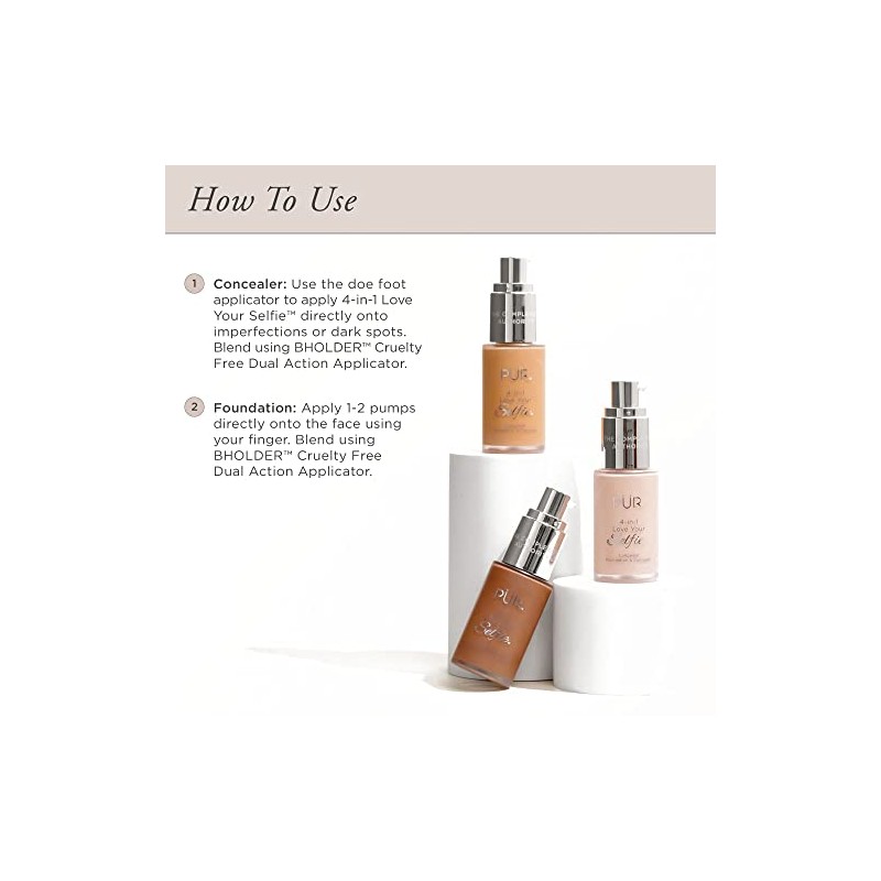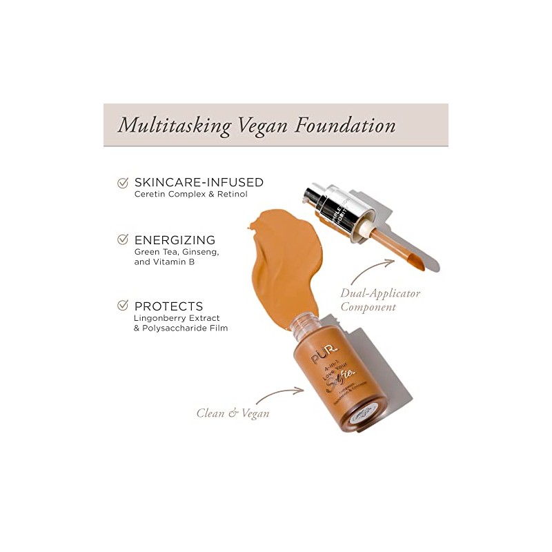 PÜR 4-in-1 Love Your Selfie Longwear Foundation & Concealer, Full Coverage Liquid Foundation, Hydrating Formula, Cruelty Free