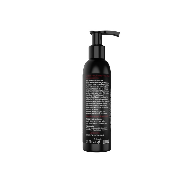 - Moringa Oil with Zeatin: Infused with Zeatin, a powerful compound known for promoting cell regeneration, Moringa oil helps improve skin texture, promoting youthful vitality and resilience.