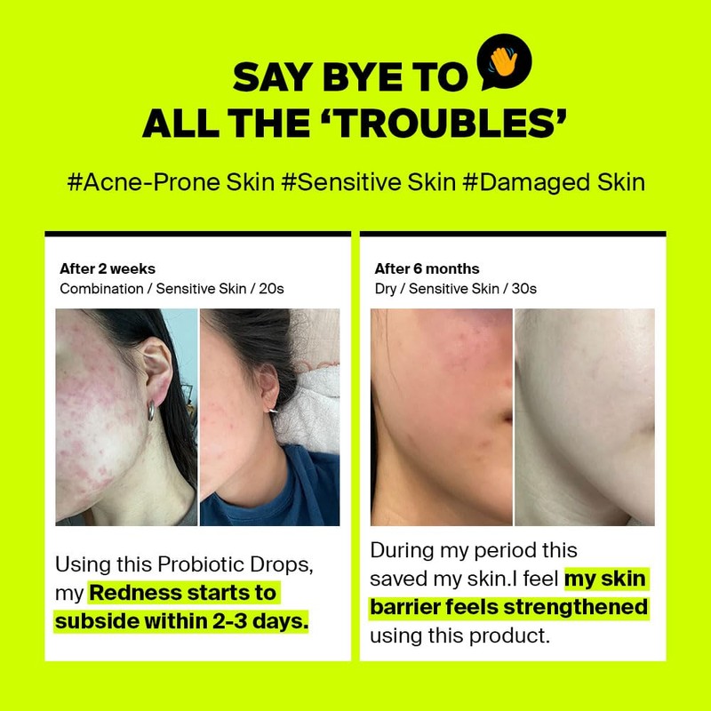 - [Formula for Everyone] With a water-like texture, this probiotic drop absorbs quickly, making them excellent for layering with other skincare products. Recommended for all skin types, including dry, oily, and combination skin. Non-comedogenic tested, suitable for acne-prone skin.