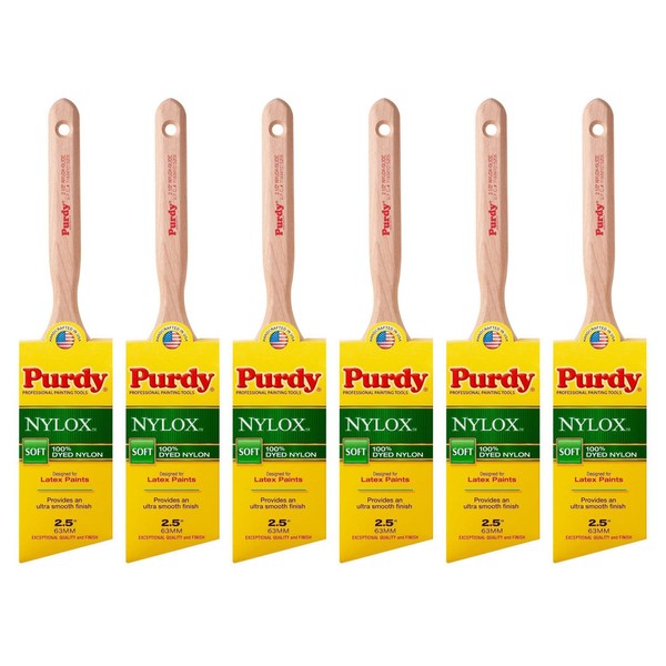 Purdy 144152225 2-1/2" 100% Dyed Nylon Soft Nylox Glide Angular Paint Brush - 6ct. Case