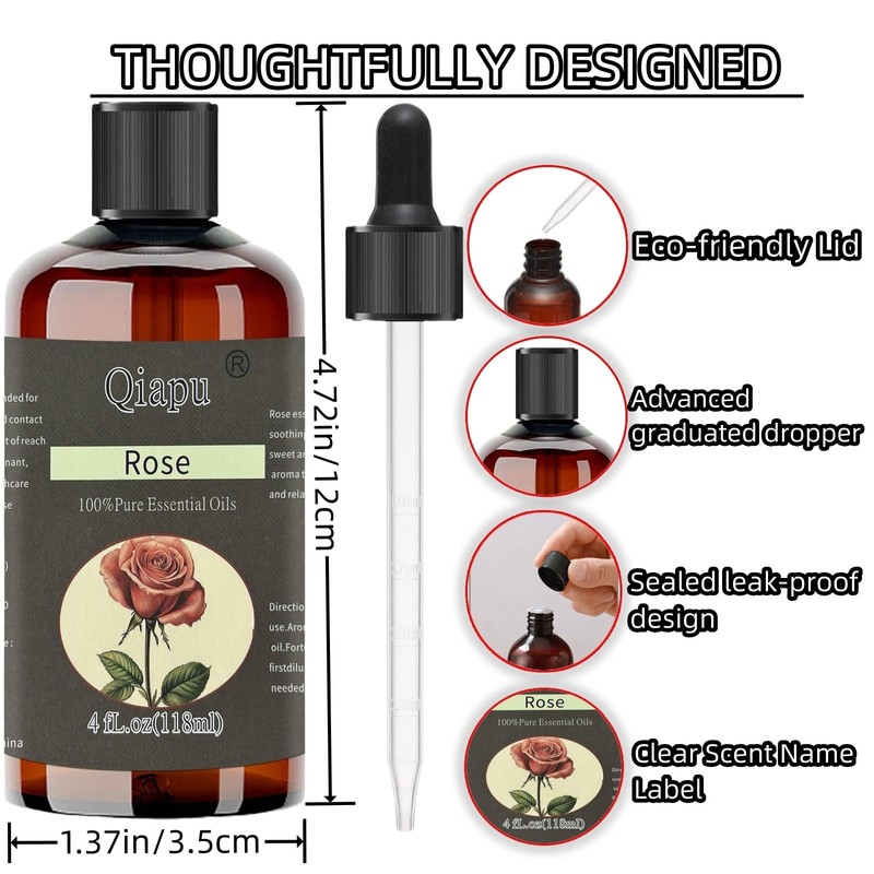 Pure and Natural Rose Diffuser Scented Oil Premium Aromatherapy for Laundry Scented Oils with Dropper
