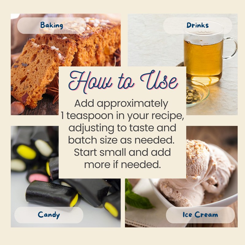 • APPLICATIONS: Just one teaspoon of our anise extract can infuse its warm, licorice-like sweetness into your baking, desserts, beverages, candy, and frostings. It's the perfect anise extract for cakes, cookies, biscotti, pastries, coffee, sauces, and confections.