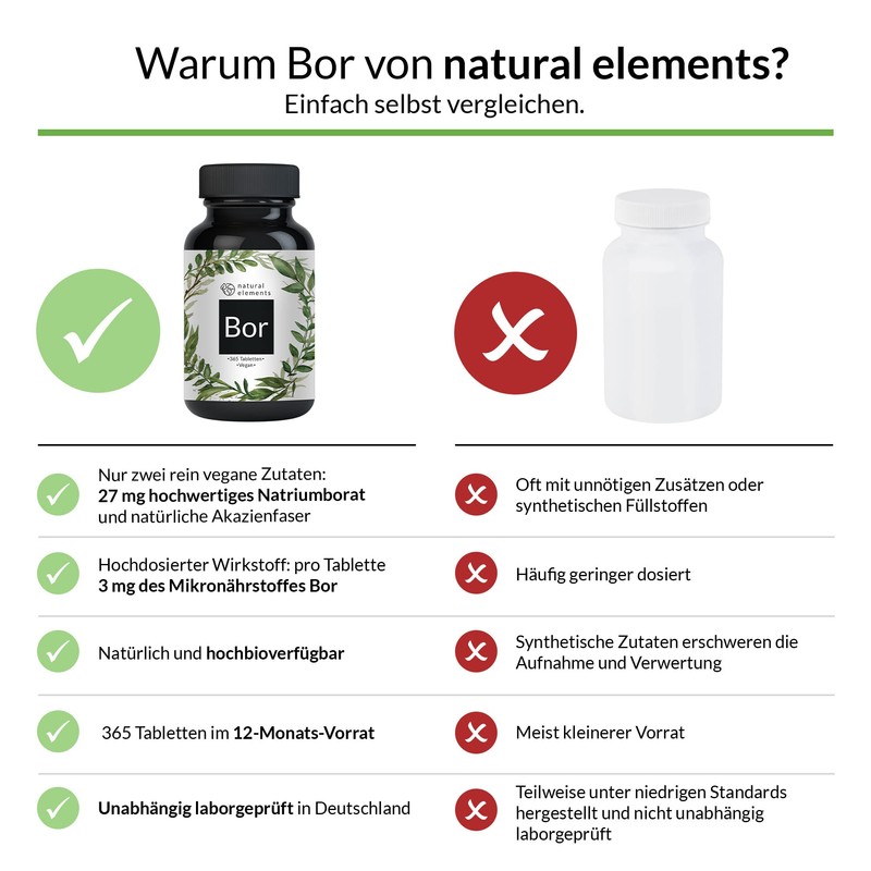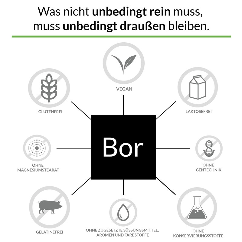 • Independently laboratory tested: our vital substance boron has been strictly tested by an accredited German laboratory (DIN EN ISO/IEC 17025). For the highest quality and satisfaction.