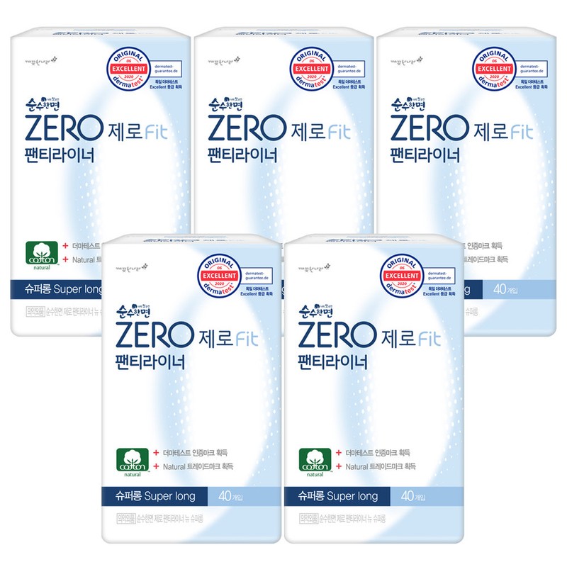 Pure Cotton Zero Panty Liner 40p x 5 / 순수한면 제로 팬티 라이너40p x5개
