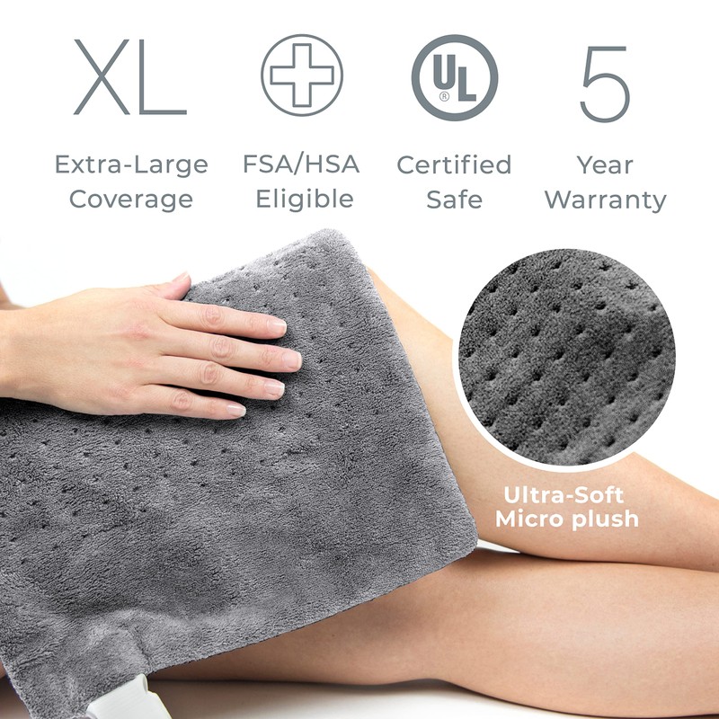 - SOFT FABRIC & EXTRA-LONG CORD: Gentle, machine-washable microplush fabric feels soft and comforting on bare skin and offers maximum comfort for daily use. The 9-foot cord allows you to adjust positions and pad placement with ease while relaxing on your bed, couch, or office chair.