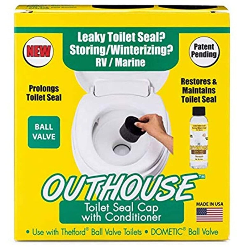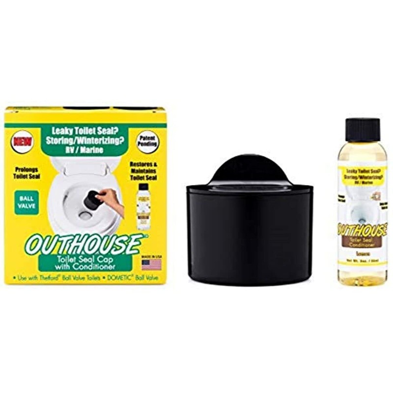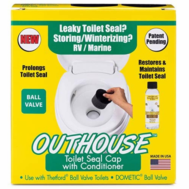 The new patent-pending Outhouse Ball Valve Toilet Seal Cap solves and restores a leaky toilet seal, preventing unwanted odors that can come up from the holding tank through your toilet. It helps prolong the life of the toilet seal and restores leaky toilet seals by allowing Outhouse Toilet Seal Conditioner (item #123485 sold separately) to be absorbed into the foam of the Outhouse Ball Valve Toilet Seal Cap and saturate the toilet seal continually. It also caps off the toilet seal valve / flap while your RV is being stored, keeping the unwanted odors out of your RV. The fractionated coconut oil that's used in the conditioner is anti-rancid and will prevent the foam on the cap from going rancid when storing the cap to reuse later.. Prevents toilet seals from drying up during RV storage. Helps prevent unwanted coming up from the holding tank. Conditions, lubricates, and restores leaky toilet seals. Use with Outhouse Toilet Seal Conditioner (item #123485 sold separately). Made in the USAAPPLICATIONSMfr. Part Number OHCB4116 for use withThetford Ball Valve Toilets:Aqua-Magic ResidenceAqua-Magic Style II / Style PlusDometic Ball Valve Toilets:500 SeriesSeaLandNOTE: Do Not Use With Dometic Models 300, 310, and 320.