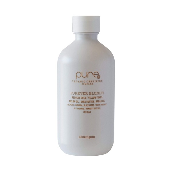 Pure Forever Blonde Shampoo 300ml is a luxury shampoo that gently cleanses while reducing yellow and gold tones in all blonde hair. This shampoo is formulated with organic extracts, pure complex, and blue cypress oil to tone and moisturize bleached, highlighted, foiled, blonde, or grey hair. Its gentle formula helps to reduce yellow and gold tones, leaving hair looking brighter and more vibrant. The shampoo also helps to nourish and hydrate hair, leaving it feeling soft and smooth. What are the benefits and features of Pure Forever Blonde Shampoo 300ml? Reduces yellow and gold tones in all blonde hair. Formulated with organic extracts, pure complex, and blue cypress oil to tone and moisturize hair. Gently cleanses hair, leaving it looking brighter and more vibrant. Nourishes and hydrates hair, leaving it feeling soft and smooth. Helps to maintain the health and integrity of blonde hair. Free from sulfates, parabens, and artificial colors. Safe for use on color-treated hair. Who is Pure Forever Blonde Shampoo 300ml for? This shampoo is perfect for anyone with blonde hair who wants to reduce yellow and gold tones while nourishing and hydrating their hair. It is also ideal for those with bleached, highlighted, foiled, or grey hair who want to maintain the health and integrity of their hair.
