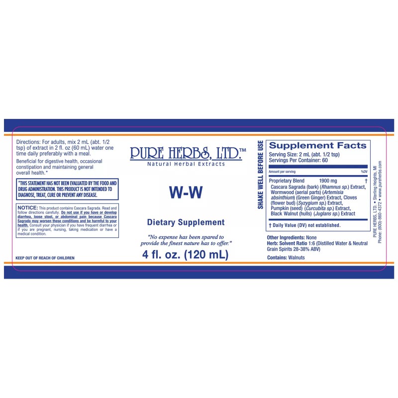 Pure Herbs: W-W - Beneficial for digestive health, occasional constipation and maintaining general overall health.*