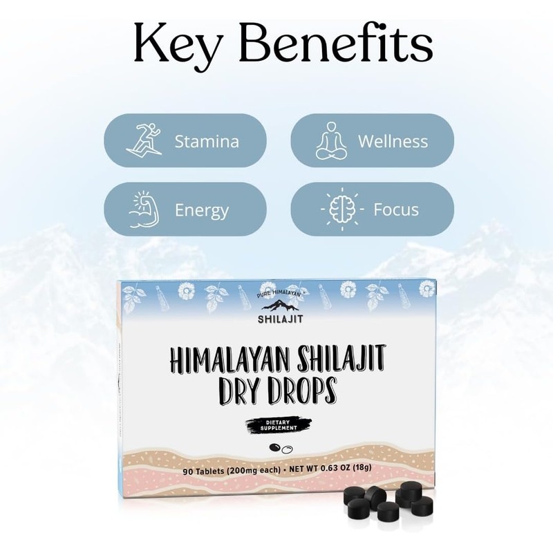 Pure Himalayan Shilajit Dry Drops – 90 Tablets (200mg Each) – Maximum Potency with 85+ Trace Minerals & Fulvic Acid – Supports Metabolism, Energy & Immune Health for Men