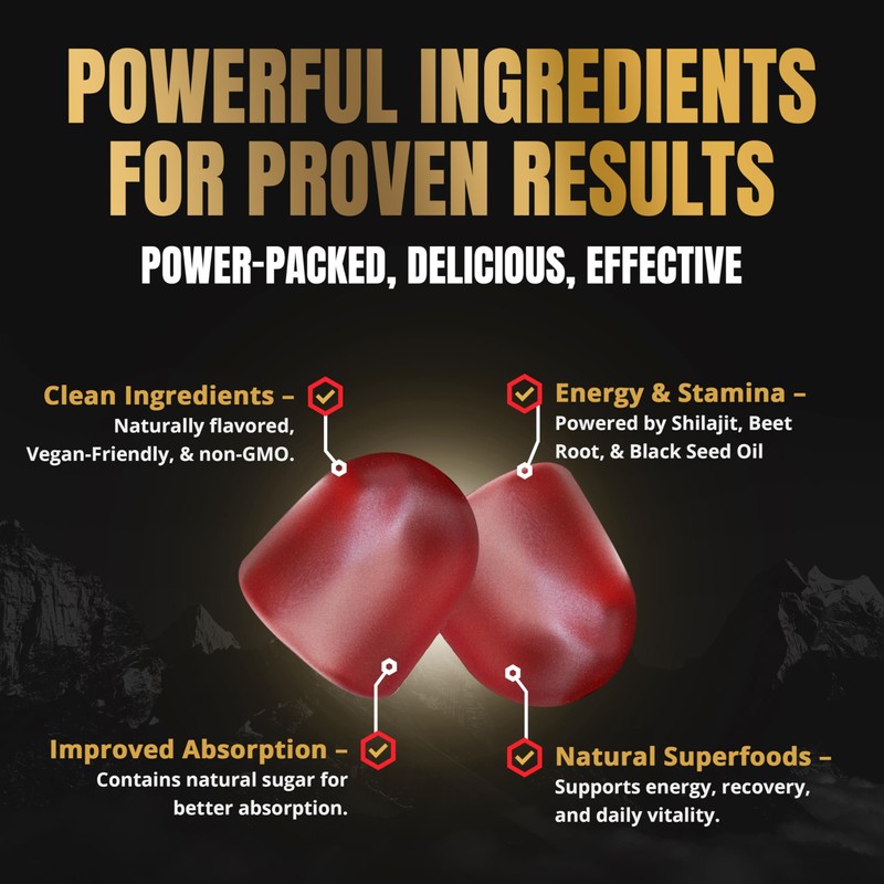 Gold Shilajit Gummies for Vitality: TRUE Shilajit Gummies support sharper focus, sustained stamina, & natural vitality; Crafted with Shilajit, Sea Moss, & Black Seed Oil, to fuel performance with proven ingredients in a delicious, easy-to-take form