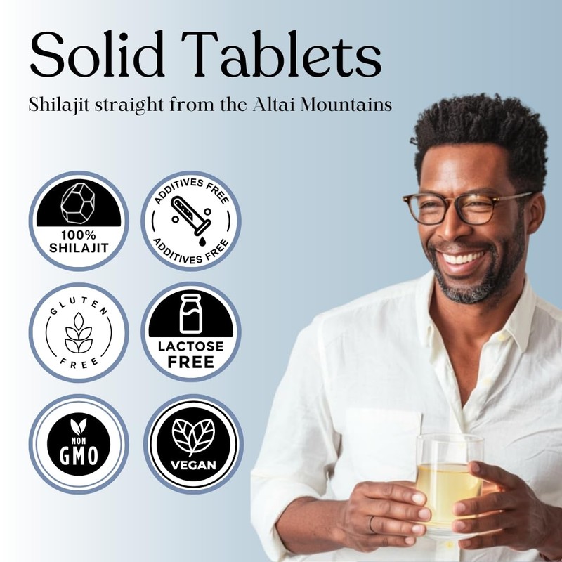 - With a gold standard of purity, potency and absolutely no hidden ingredients, you will experience 200mg of authentic shilajit tablets with each serving. Our high-potency shilajit for men and women comes in air tight packaging to keep your shilajit tablets fresh longer. Natural occuring fulvic acid from 40% to 65%.