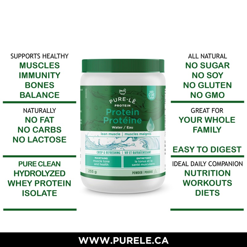 Pure-le Protein Water - Virtually Taste Free, Non-Thickening, All Natural, Zero Carbohydrate - 100% Grass-Fed Hydrolysed Whey Protein Isolate, Pastured Raised, Lactose-free, Hormone Free, Soy Free, GMO Free, Gluten Free - Made in Canada