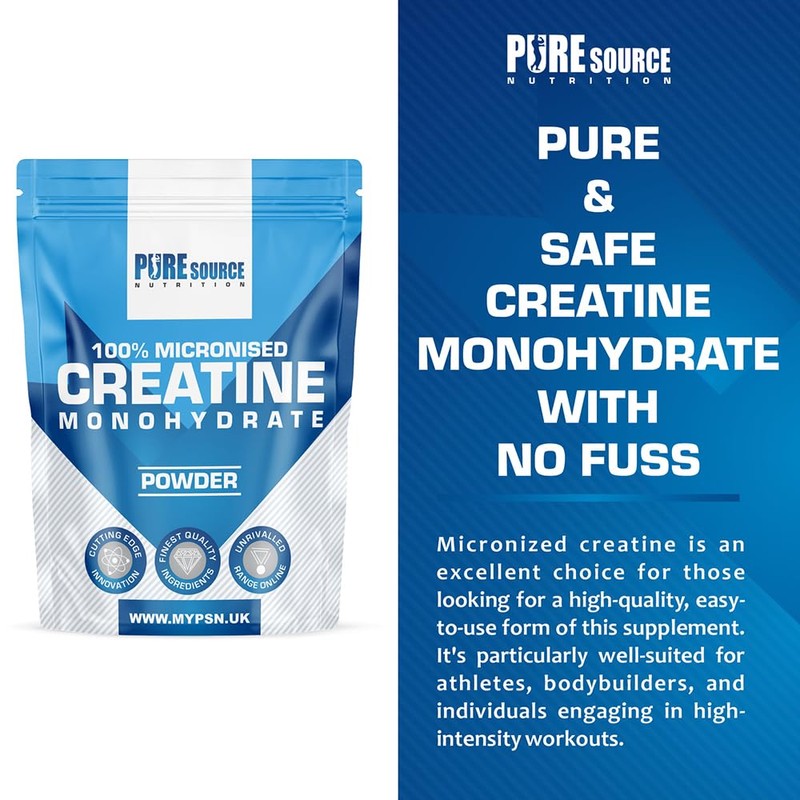 Pure Source Nutrition Creatine Monohydrate Powder Vegan Gluten Free 100% Micronised Creatine Unflavoured Proven to Improve Physical Performance and Recovery Powder (750g)
