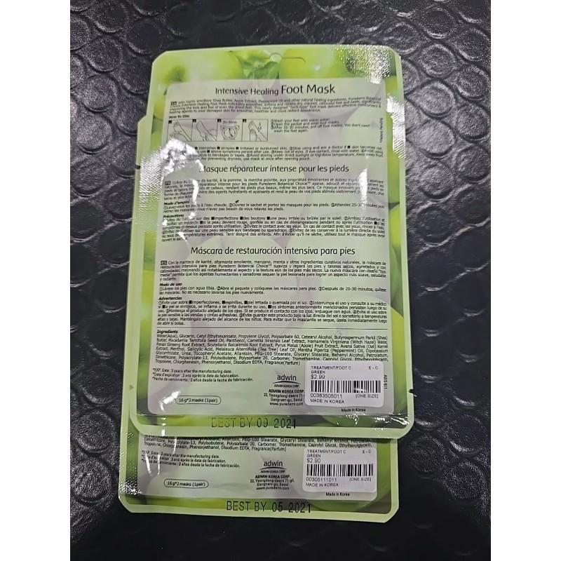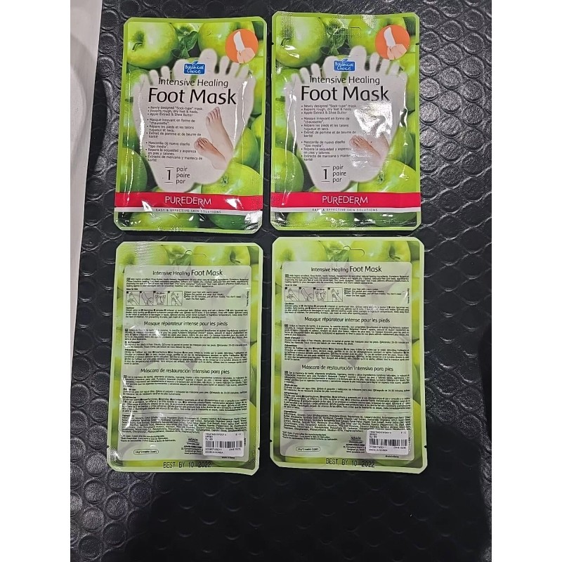 EXPIRED Purederm Intensive healing foot mask, apple, 1 pair per purchase. No Guarantees on which one you'll get of the 4 shown however, they all feel like they still have wet weight.