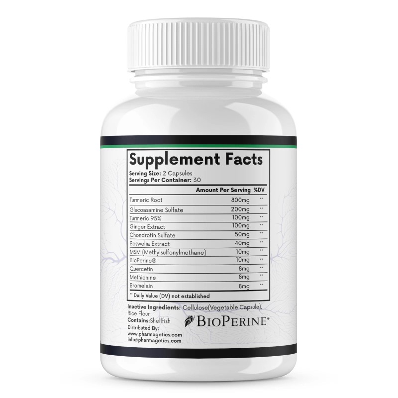- Ingredients: Bromelain, bioperine, Tumeric Root, Ginger Extract, Tumeric 95%