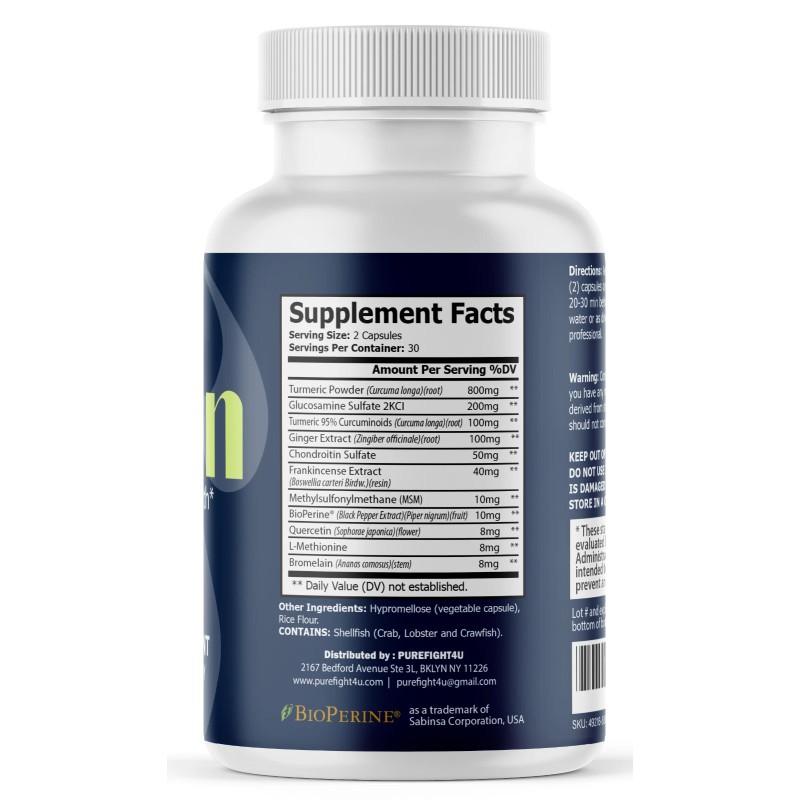 - Ingredients: Bromelain, bioperine, Tumeric Root, Ginger Extract, Tumeric 95%
