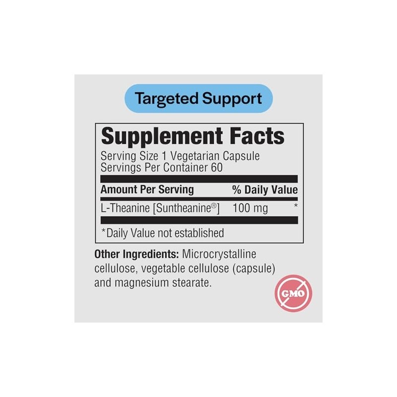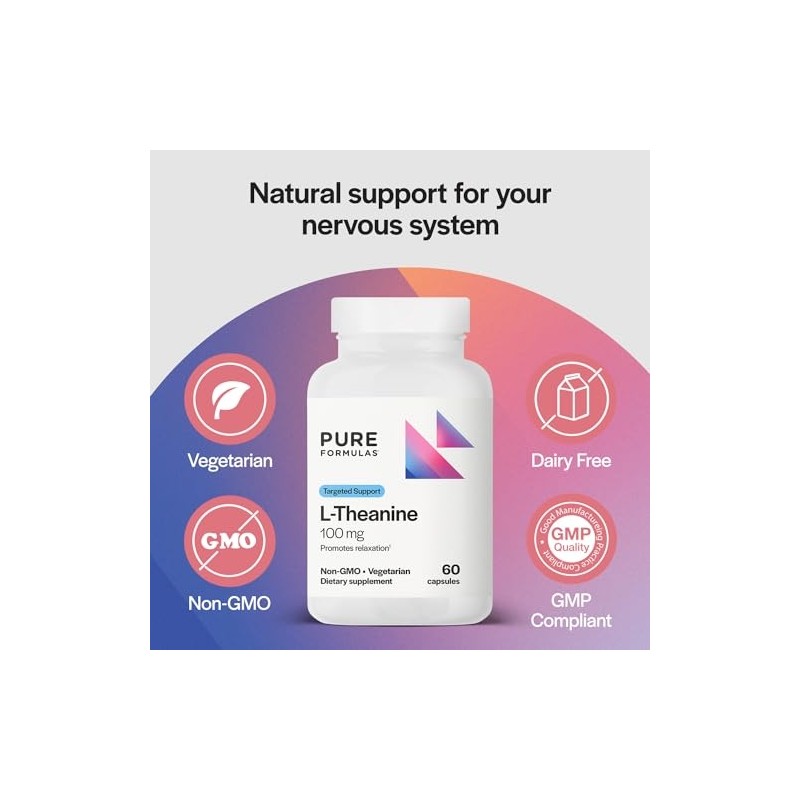 PureFormulas L Theanine Supplement 100 mg, L-Theanine Supports Stress Levels, Relaxed State, Mood, Sleep, Dairy Free, Soy Free, Non-GMO 60 Vegetarian Capsules