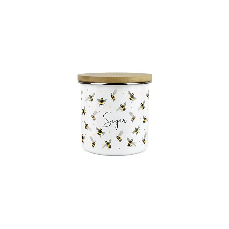 - This durable enamel sugar storage container is a stunning yet practical addition to any kitchen! With a sweet painted flying bee design.