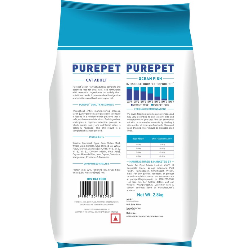 PUREPET Adult Dry Cat Food, Ocean Fish Flavour, 2.8 kg Pack