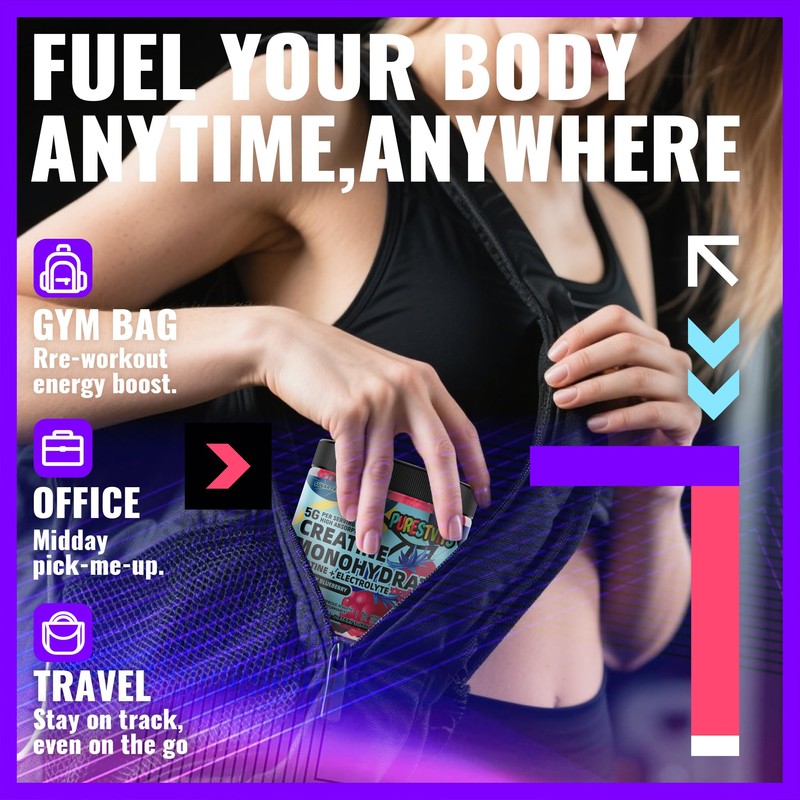 - [ Key Benefits]: Our Creatine monohydrate gummies are an easy way to consume, 3 gummies per serving, you can take it at any time, any place. It improved muscle strength, muscle recovery, improve endurance and energy boost. Suitable for a variety of users, and enjoyable taste.