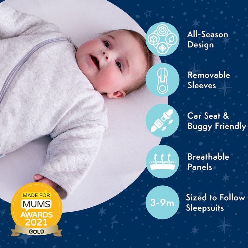 - 2.5 Tog - The only baby sleeping bag your baby will need at any time of year, no matter the weather. With zip and removable sleeves so this sleeping bag can be used in temperatures up to 14 C up to 22 C.