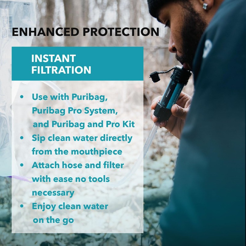 - ENHANCE WATER PURITY - Increase your Puribag’s purification capabilities to be able to eliminate 99.9999% of bacteria, 99.99% of viruses, and 99.9% of protozoa.