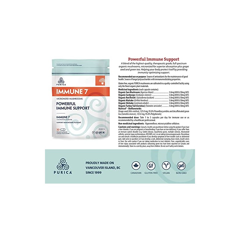 PURICA Purica - Immune 7 Powerful Immune Support Supplement 30 Caps - Immune System Support - Immunity Vitamins - Immune 7 Mushroom - Immunity Supplement - Immunity Support