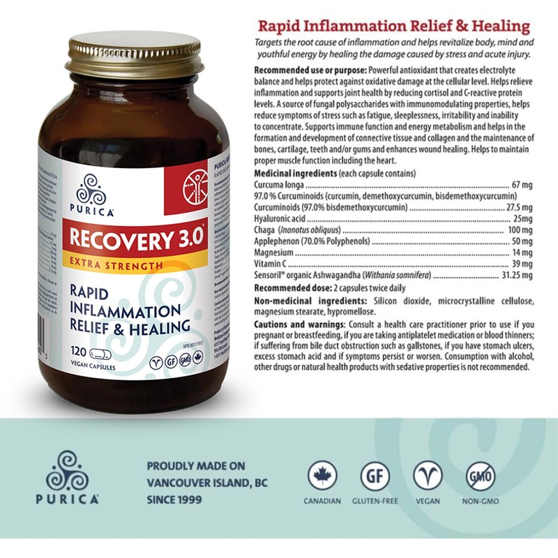 PURICA - Recovery 3.0 Extra Strength - Rapid Inflammation Relief & Healing - 120 Count (Pack of 1)