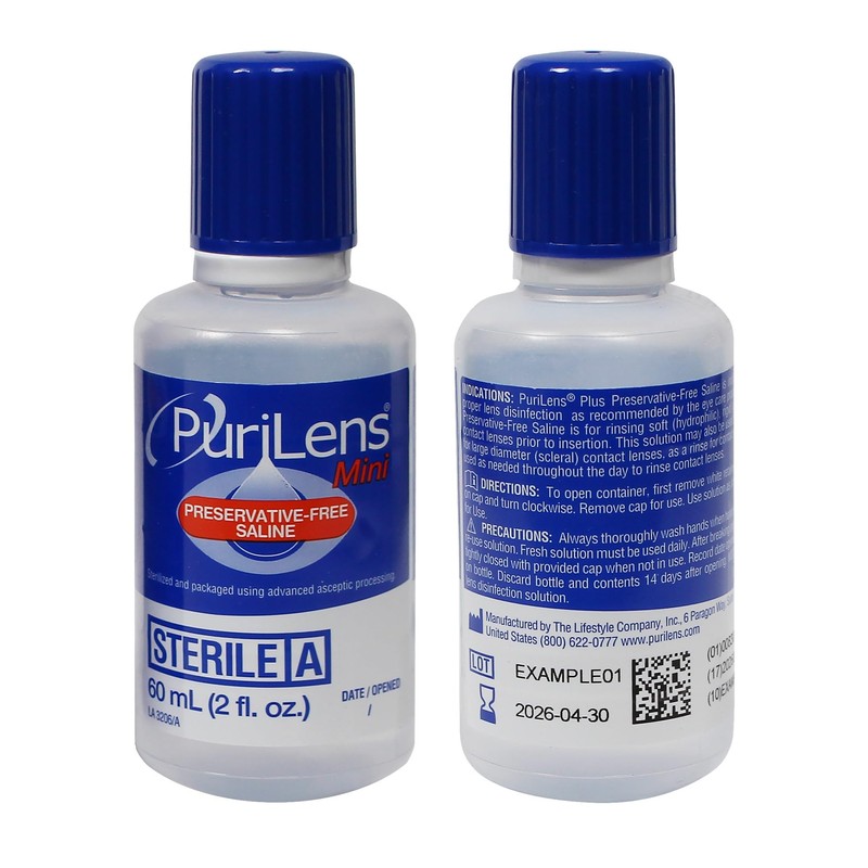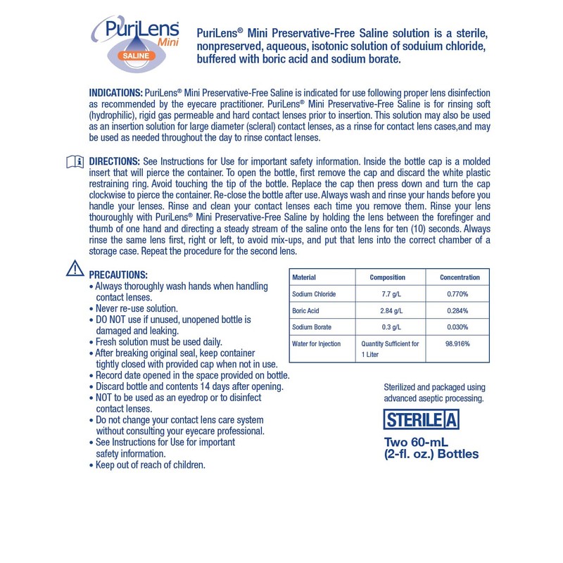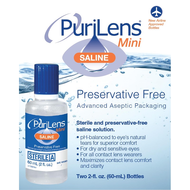 Purilens Mini Preservative-Free Contact Lens Saline 60ml (2 fl. oz.) 2 Pack