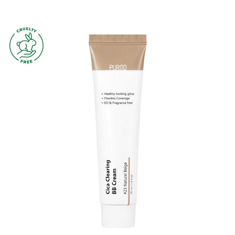 🌸 PURITO CICA Clearing BB Cream is a lightweight BB cream that provides a silky smooth finish to the skin. This BB cream offers medium coverage, leaving skin looking fresh, soft, and healthy.