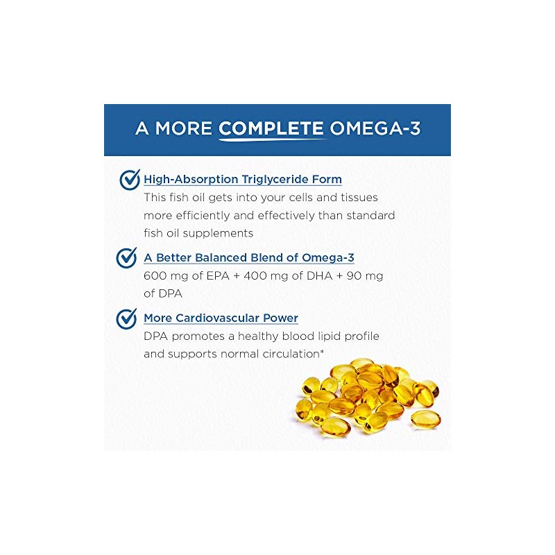 Acerca de este artículo 3 Ácidos grasos esenciales en una fórmula equilibrada: obtén los beneficios de los 3 principales ácidos grasos omega (EPA, DHA y DPA). La mayoría de los suplementos de aceite de pescado contienen solo EPA y DHA, pero hemos agregado DPA para un mayor apoyo cardiovascular BENEFICIOS MÚLTIPLES: Obtenga apoyo para la salud cardiovascular, los niveles de lípidos en sangre que ya están en el rango normal (triglicéridos y colesterol), comodidad de las articulaciones, salud cerebral e incluso presión arterial ya en el rango normal Bloquea la frescura: tratamos el aceite de pescado omega-3 ultrapuro de la misma manera que tratas tu comida. Nuestro sistema LemonLock Freshness ayuda a mantener a raya el regusto a pescado y los temidos "eructos de pescado.